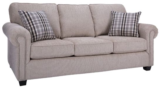 Simple and Classic Canadian design. Semi-attach back with rounded arms. Decorative nail studs along arm facing are optional. Available in fabric and leather, it offers timeless comfort and understated elegance, making it a versatile choice for both modern and traditional interiors.Read More