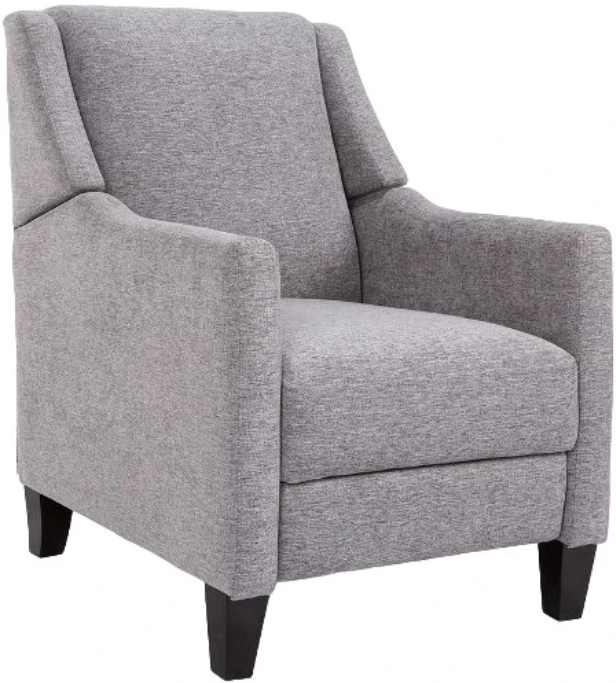 Recliner chair with high back, slim arms and exposed wood legs. This streamline design puts comfort center stage. At a touch of a button, you can recline with foot rest extended and just relax. Available in Push back or Power.Read More
