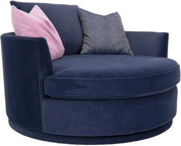 Round out your living room with the contemporary curves of this chair lounger. This inviting swivel chair beckons you to kick off your shoes and snuggle up. A tight barrel back completes the circle with a loose back pillow and several oversized throw pillows.Read More