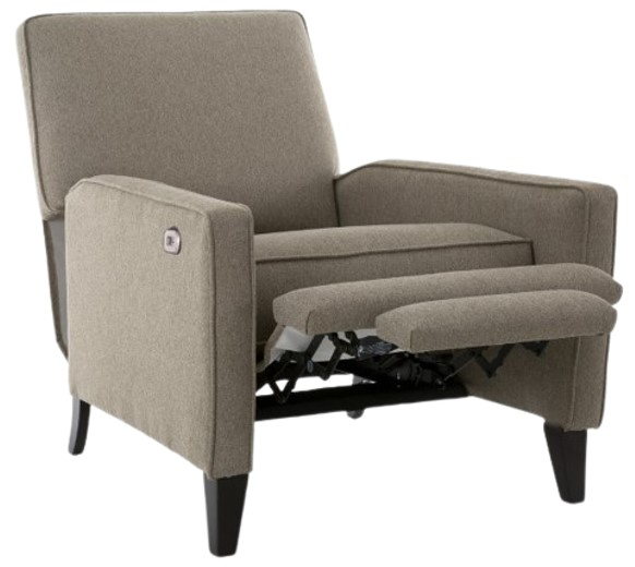 Recline in comfort with this chair’s classic high back, slim arm and exposed wood leg. A simple pushback motion allows either semi or fully reclined positions. Also offered as a power recliner with an optional battery backup. Clean and modern styling allows this chair to work in a modern or transitional lifestyle.Read More