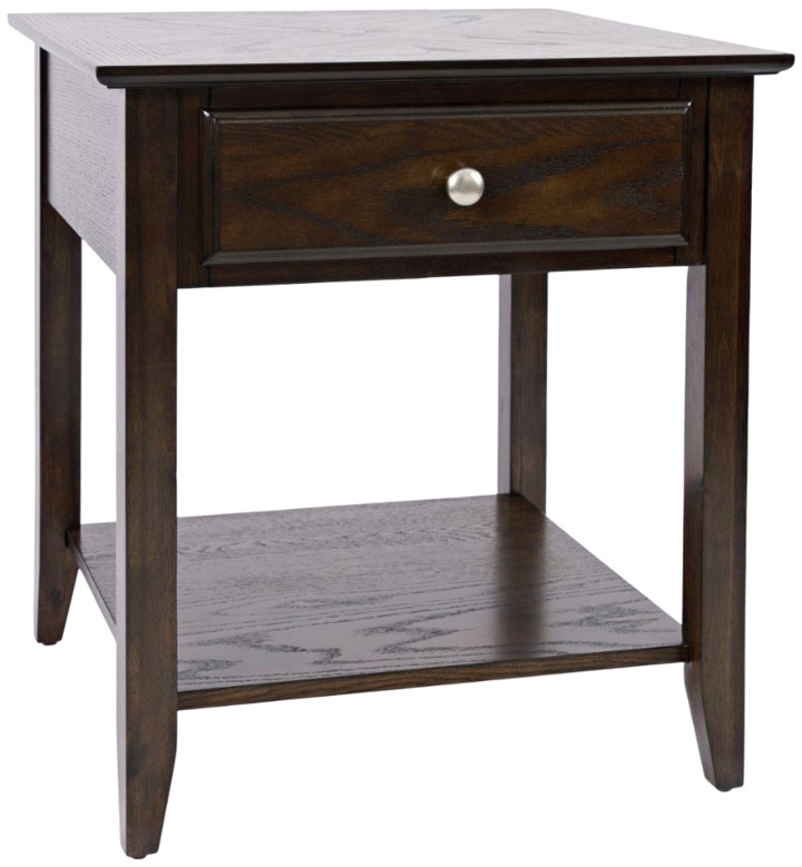 Sometimes, you just want a timeless look. Enter our Classics collection. Providing elegant, subtle looks with rich finishes with outstanding functionality. This end table features a butterfly matched veneer with straight-edge banding on the table top, an espresso finish, one drawer, and one shelf for open storage or display.Read More